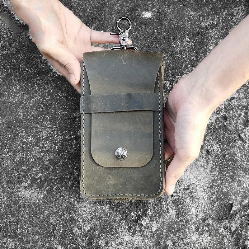 Handmade Green LEATHER MEN Slim Belt Pouches Waist BAG Slim Belt Bag FOR MEN