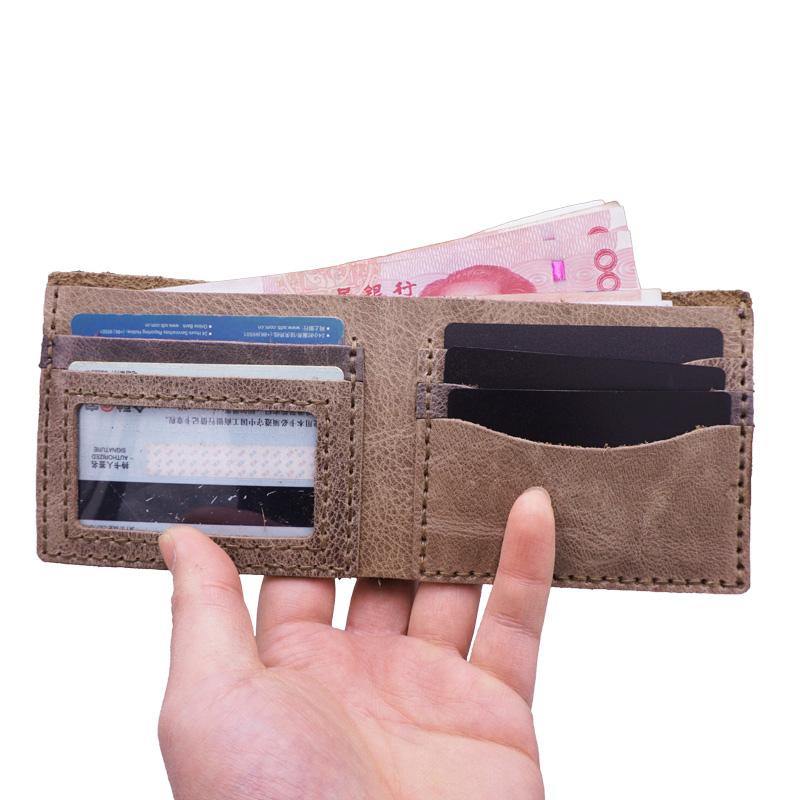 Handmade Brown Leather Mens Billfold Wallets Slim Brown Bifold Small Wallet for Men