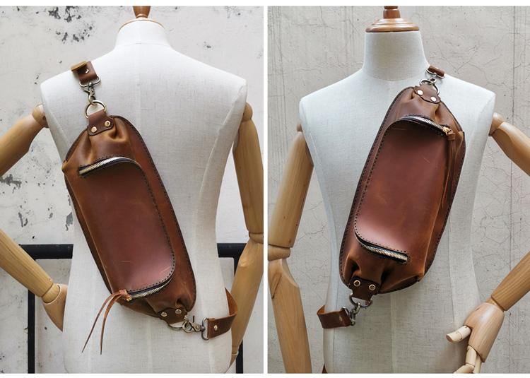 Vintage Large Leather Mens Sling Bag Brown Sling Pack Sling Backpack for Men