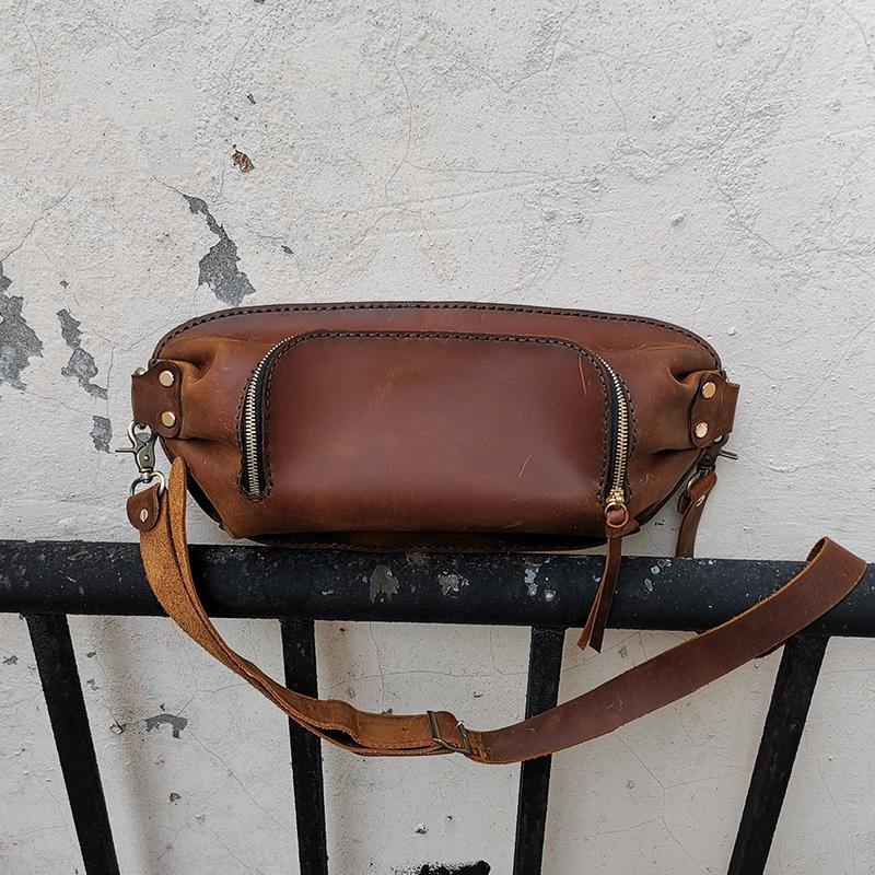 Handmade LEATHER MEN Sling Bag Waist BAG Brown LEATHER Fanny Pack FOR MEN