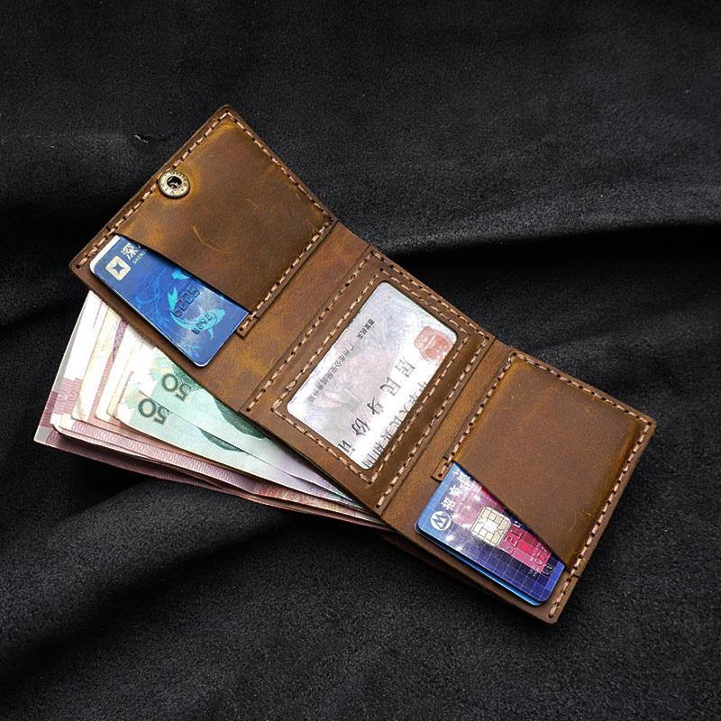 Handmade Brown Leather Mens Trifold Billfold Wallets With Front Pocket Wallet for Men