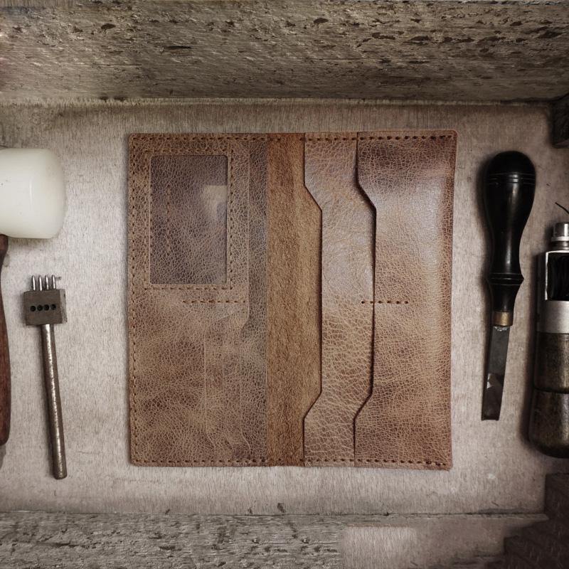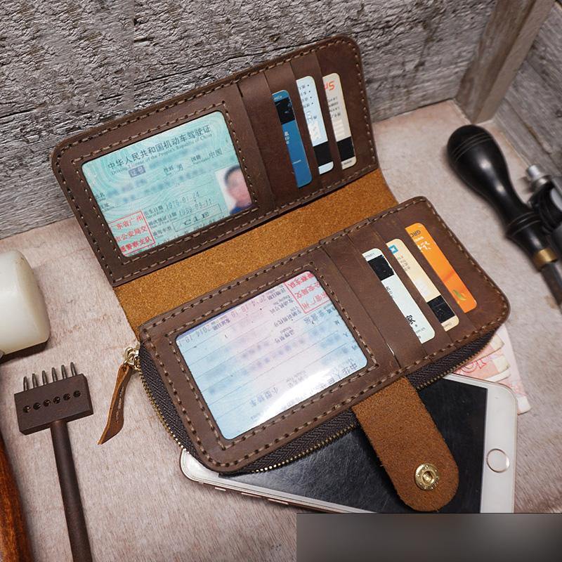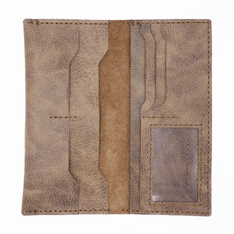 Handmade Slim Leather Mens Bifold Long Wallet Checkbook Wallet Lots Cards Long Wallet for Men