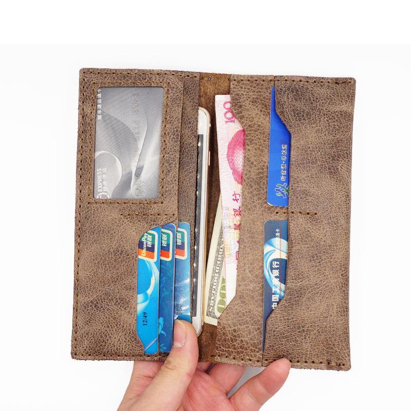 Handmade Slim Leather Mens Bifold Long Wallets Checkbook Wallet Lots Cards Long Wallet for Men
