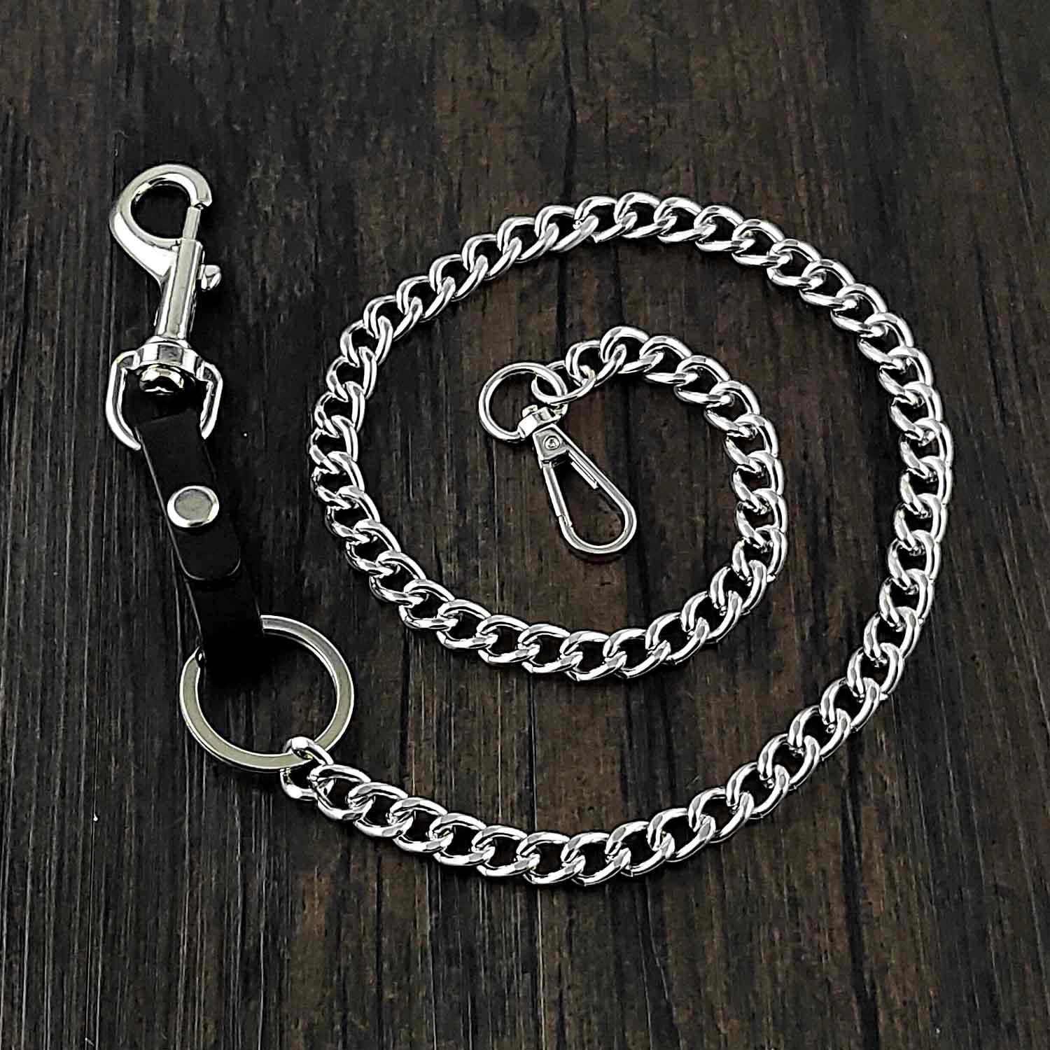 Badass Leather Silver Long Leather Biker Chain Trendy Pants Chain Wallet Chain For Men