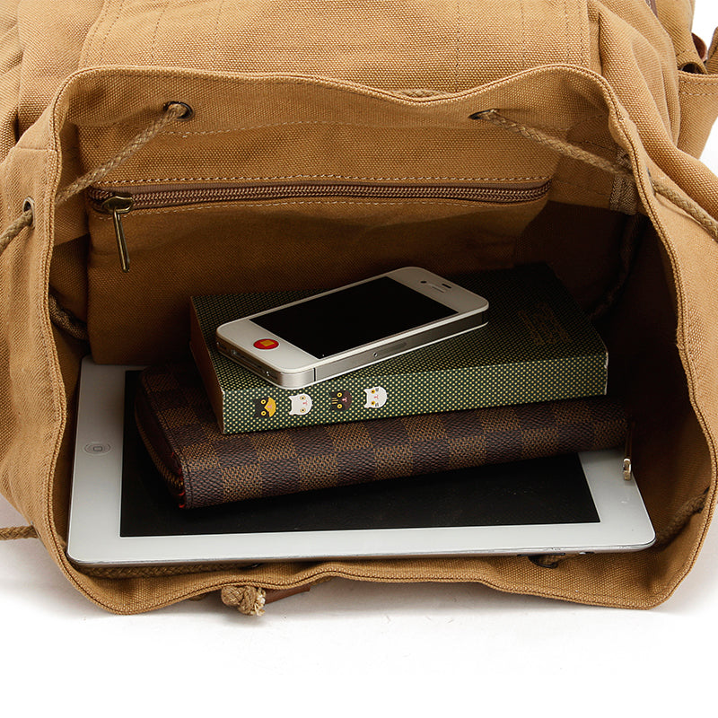 Khaki CANVAS WATERPROOF Womens 15'' MENS BACKPACK LARGE School Backpack Hiking Backpack FOR MEN – 宇宙皮號