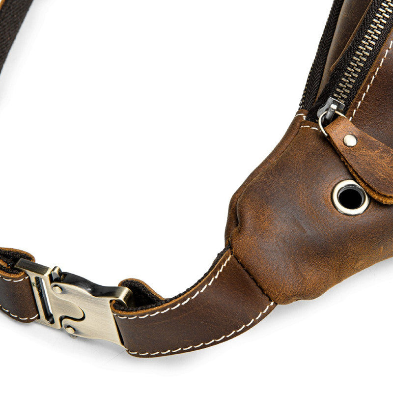 Vintage Brown Leather Fanny Pack Men's Chest Bag Hip Bag Brown Waist Bag For Men – 宇宙皮號