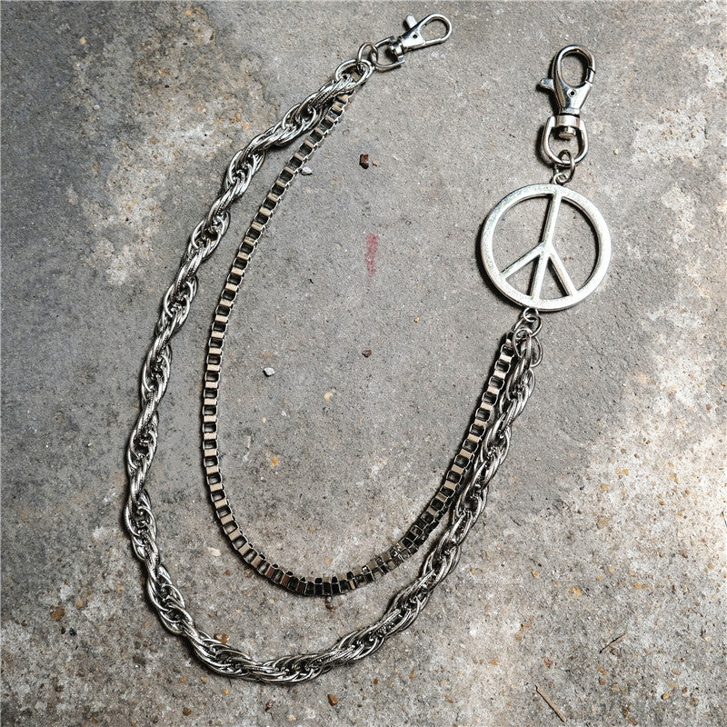 Badass Mens Double Pacifism Long Stainless steel Pants Chain Wallet Chain For Men – 宇宙皮號