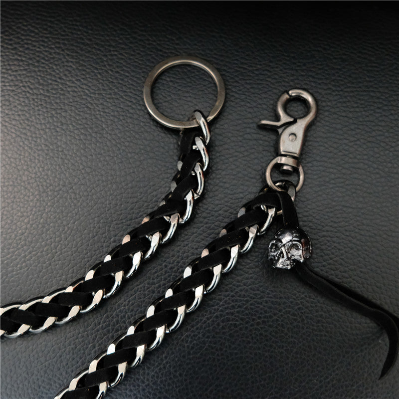 Badass Men's Braided Leather Skull Key Chain Pants Chain Biker Wallet Chain For Men – 宇宙皮號