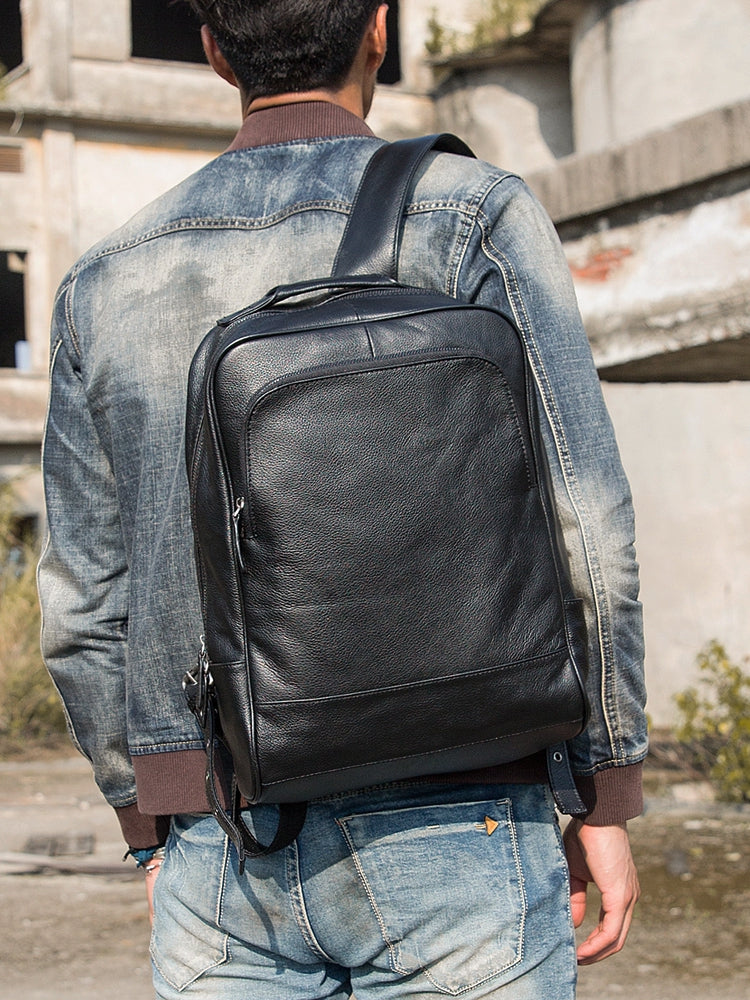 Style: Black Fashion Mens Leather 15-inch Business Computer Backpacks Travel Backpacks Black College Backpack for men