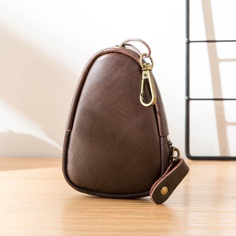 Design: Black Handmade Leather Mens Brown Small Wallets Car Key Wallet Dark Brown Coin Purse For Men