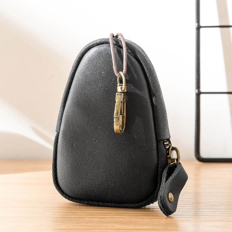 Black Leather Mens Small Car Key Wallet Brown Key Holder Coin Purse For Men – 宇宙皮號