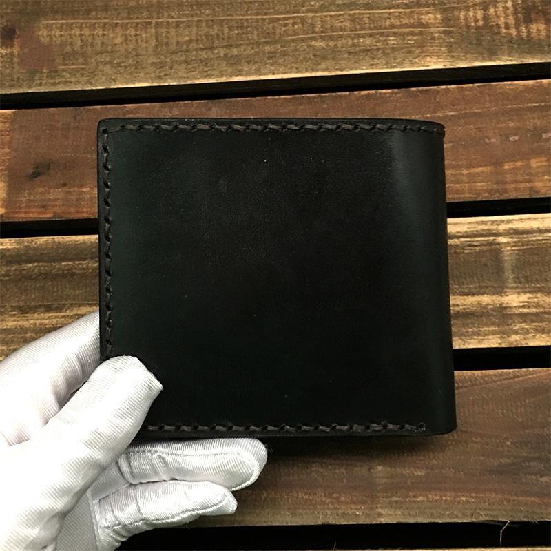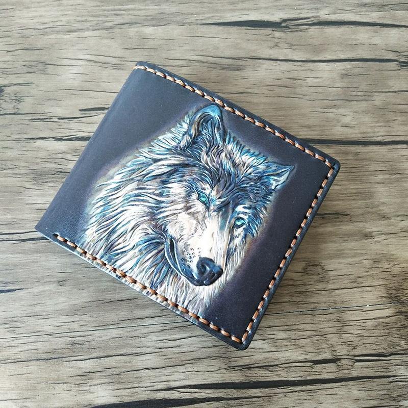 Handmade Black Tooled Leather Kitten Wolf Bifold billfold Wallet Small Wallet For Men – 宇宙皮號