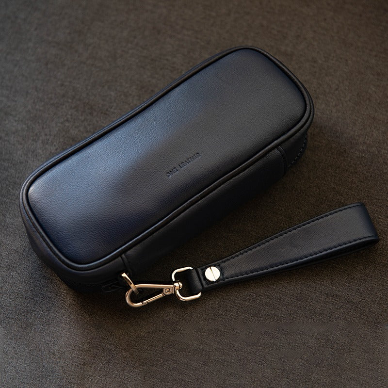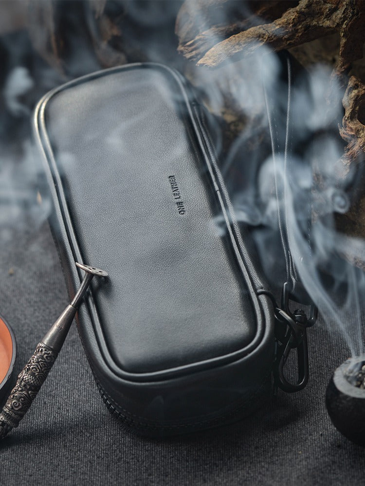 Black Leather Mens Leather 2pcs Tobacco Pipes Case Zipper Tobacco Pipe Cases for Men – 宇宙皮號