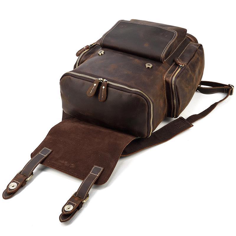 Dark Brown Leather Mens Large 15'' Travel Backpack College Backpack Barrel Backpack for Men – 宇宙皮號