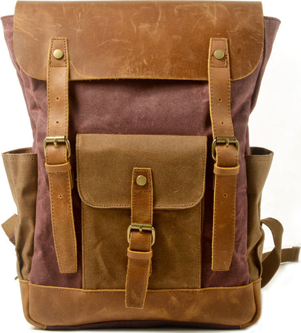 Deepkee Waxed Canvas Oiled Leather Backpack #5016