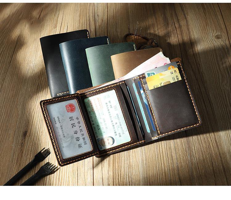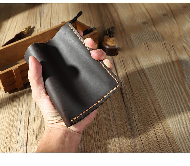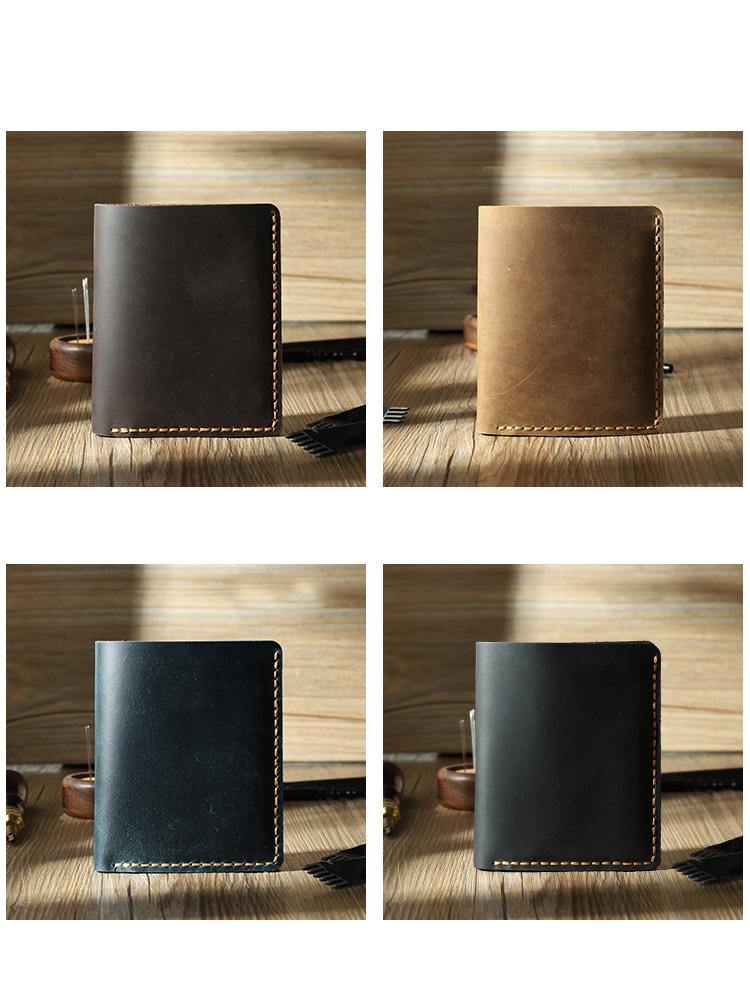 Design: Handmade Coffee Leather Mens Trifold Billfold Personalized Trifold Small Wallets for Men