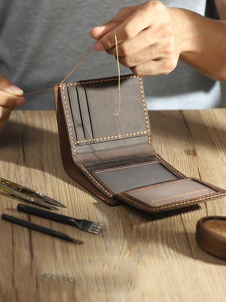 Handmade Blue Leather Mens Trifold Billfold Personalized Trifold Small Wallets for Men – 宇宙皮號