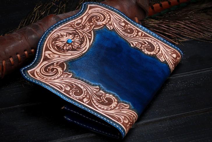Handmade Leather Mens Tooled Floral Clutch Wallet Cool Wallet Long Wallets for Men Women – 宇宙皮號