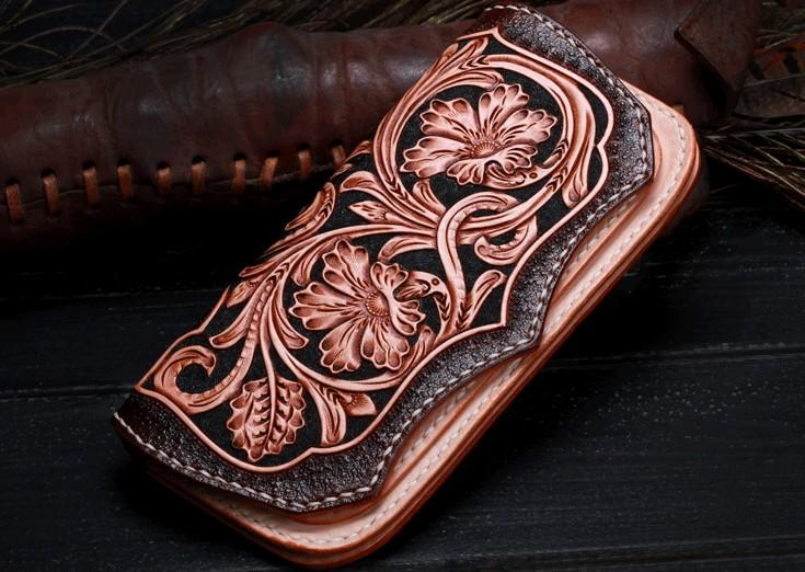 Handmade Leather Mens Tooled Floral Clutch Wallet Cool Wallet Long Wallets for Men Women – 宇宙皮號