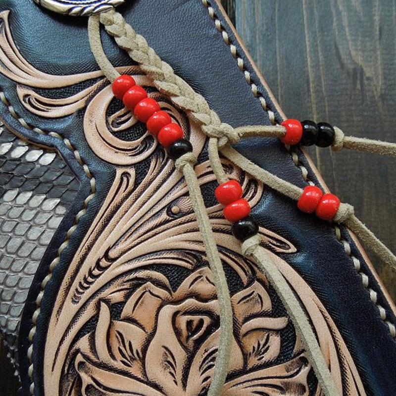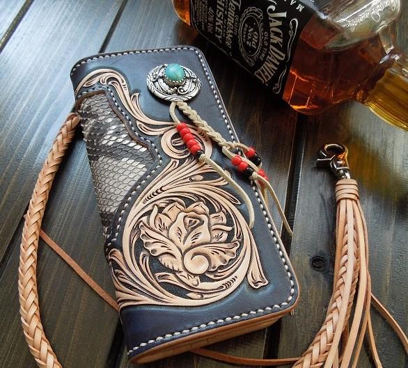 Handmade Leather Tooled Floral Mens Clutch Wallet Cool Wallet Long Wallets for Men – 宇宙皮號