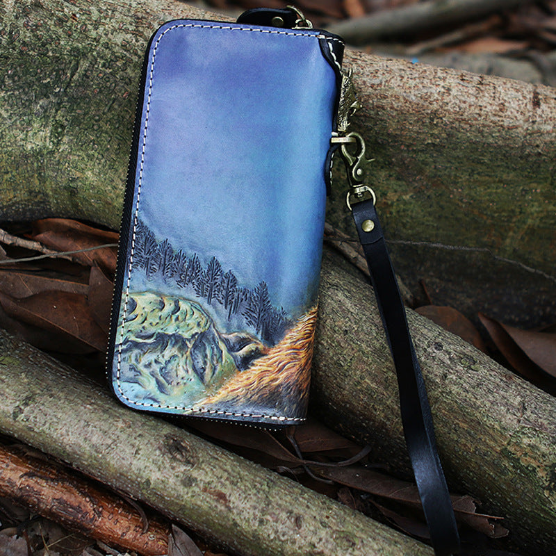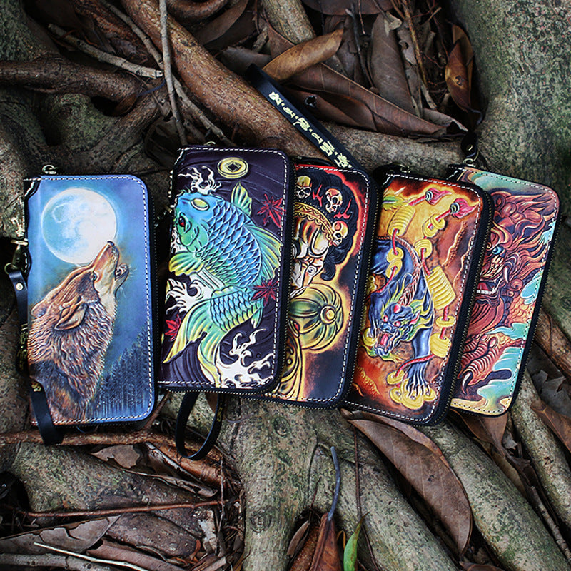 Handmade Tooled Mah¨¡k¨¡la Leather Biker Chain Wallet Mens Long Wallet with Chain for Men – 宇宙皮號