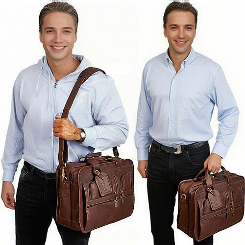 😉Made from the finest top grain cowhide leather, this top handle leather bag is not only incredibly spacious, it's made from material that's built to last too. Easily fit either a 15.6 inch laptop in this briefcase, plus there's room for your tablets, files, documents, cables, chargers, books, pens and just about anything else the executive needs to carry.