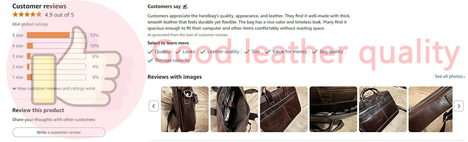 🟠Material: 100% Cowhide Grain leather mens briefcase. Sturdy top handle men's briefcase, adjustable nice shoulder straps.