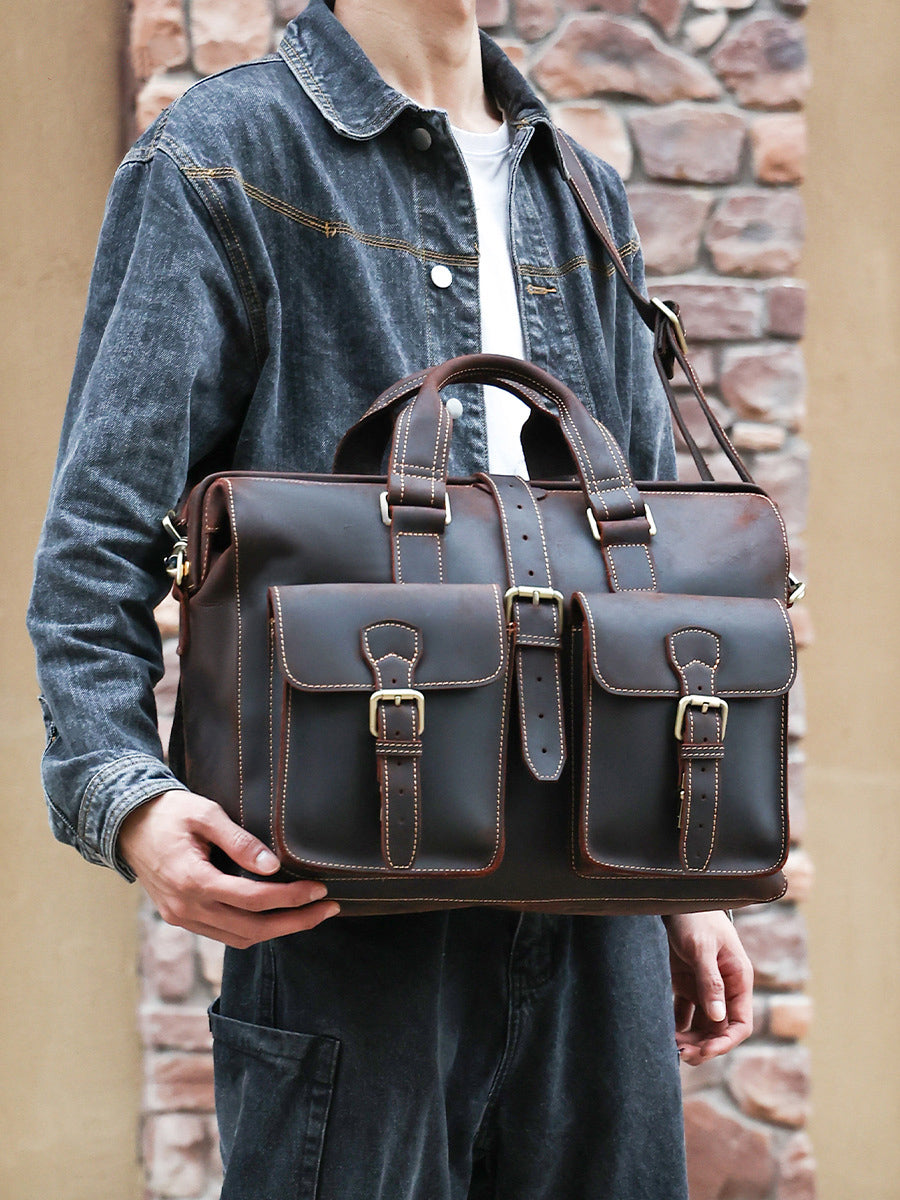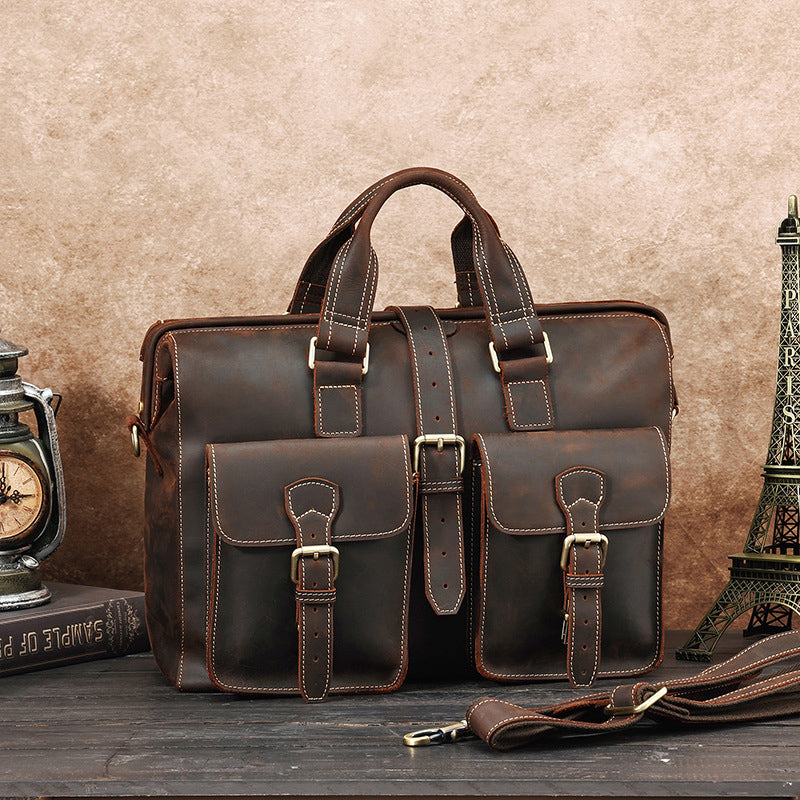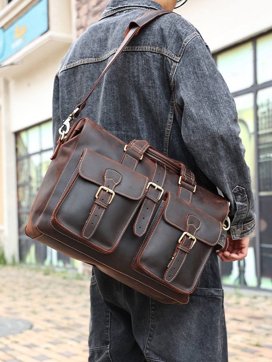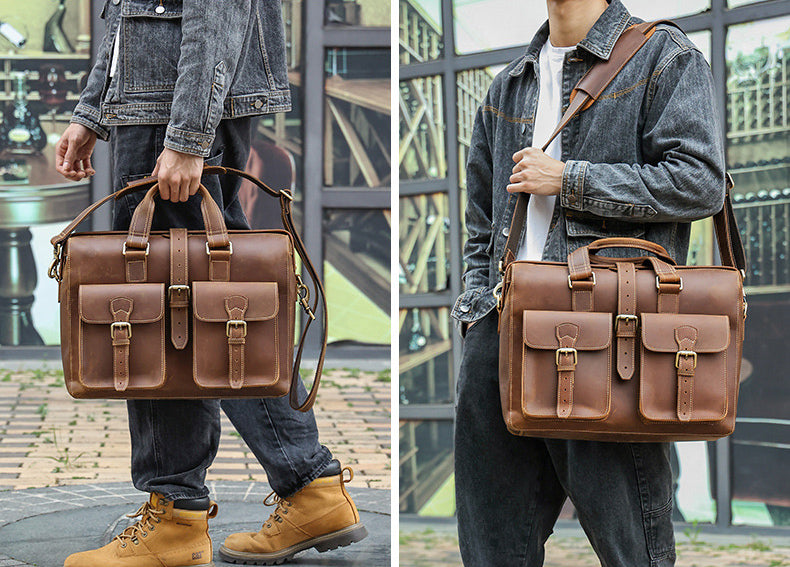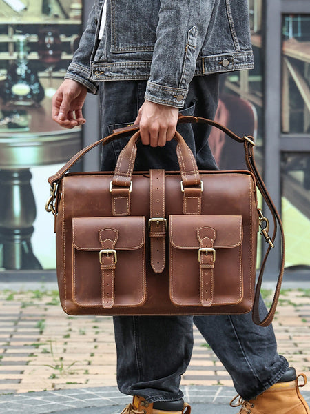 COW LEATHER, Oil Impregnated Leathers briefcase, Retro Style.