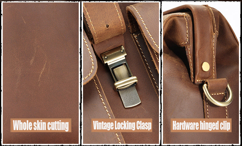 Made from a whole piece of Oil Impregnated Leathers, with retro metal locks and hardware hinged clips.