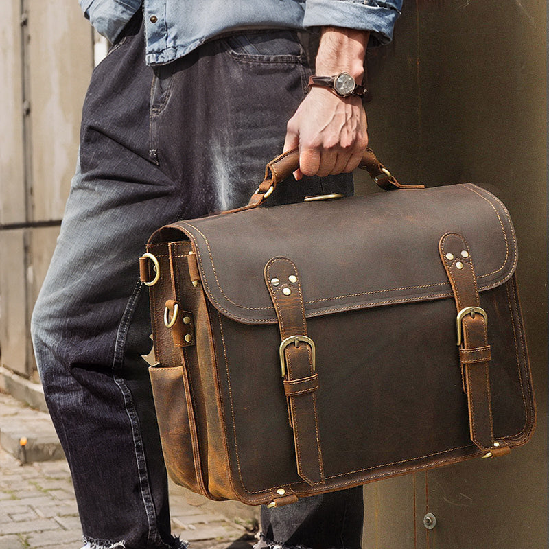 WILD OIL IMPREGNATED COWHIDE LEATHER BRIEFCASE #7370R – 宇宙皮號