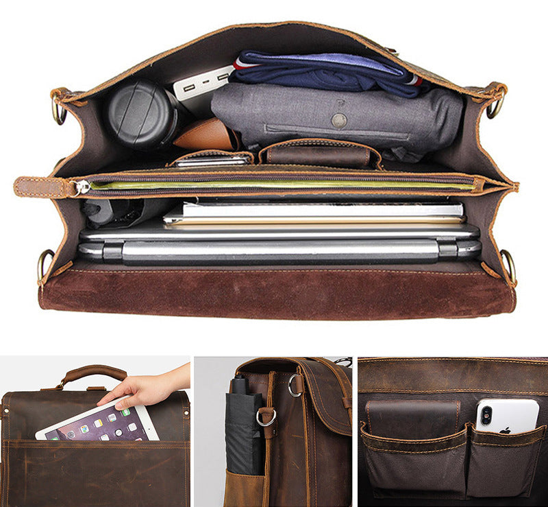 WILD OIL IMPREGNATED COWHIDE LEATHER BRIEFCASE #7370R